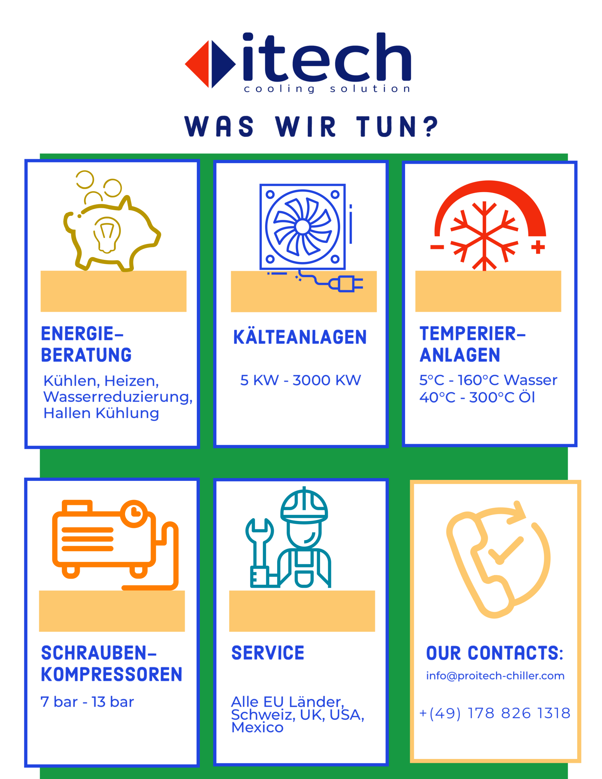 Unser SERVICE, Kälte- und Klimaanlagenbau Partner für Industrie und Gewerbe mit ca. 100 Mitarbeitern sichert Ihnen sehr kurze Reaktionzeiten, optimalen Service bei Störungen und Wartungen der ITECH Geräte und Anlagen zu.